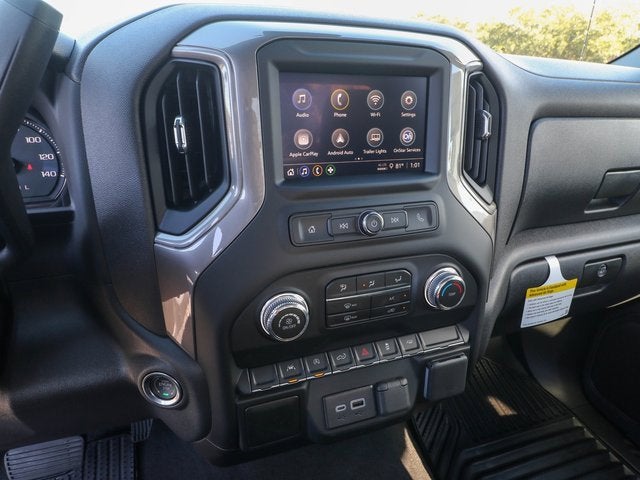 This Sierra 1500 is equipped with features such as Convenience Package (Deep-Tinted Glass, Electric Rear-Window Defogger, EZ Lift Power Lock and Release Tailgate, and LED Cargo Area Lighting), Preferred Equipment Group 1SA (2 Charge/Data USB Ports, 220 Amp Alternator, 4-Way Manual Driver Seat Adjuster, 4-Way Manual Passenger Seat Adjuster, Chrome Header with Flat Black Grille Insert Bars, Front 40/20/40 Split-Bench Seat, HD Rear Vision Camera, OnStar Services Capable, Power Door Locks, Power Front Windows with Driver Express Up/Down, Power Front Windows with Passenger Express Down, Push Button Start, Remote Keyless Entry, Solar Absorbing Tinted Glass, Wheels: 17 x 8 Silver Painted Steel, and Wi-Fi Hotspot Capable), Pro Value Package, Standard Suspension Package, Trailering Package (Hitch Guidance), 8-Speed Automatic, Jet Black Vinyl, 10-Way Power Driver Seat Adjuster with Lumbar, 120-Volt Bed Mounted Power Outlet, 120-Volt Interior Power Outlet, 2 Speakers, 2-Speaker Audio System Feature, 3.42 Rear Axle Ratio, 4-Wheel Disc Brakes, ABS brakes, Air Conditioning, AM/FM radio, Apple CarPlay/Android Auto, Auto High-beam Headlights, Auto-Locking Rear Differential, Automatic Emergency Braking, Brake assist, Buckle to Drive, Bumpers: chrome, Color-Keyed Carpeting Floor Covering, Compass, Delay-off headlights, Driver door bin, Dual front impact airbags, Dual front side impact airbags, Electronic Stability Control, Emergency communication system: OnStar, Following Distance Indicator, Forward Collision Alert, Front anti-roll bar, Front Center Armrest w/Storage, Front Frame-Mounted Black Recovery Hooks, Front Pedestrian Braking, Front reading lights, Front Rubberized-Vinyl Floor Mats, Front wheel independent suspension, Fully automatic headlights, Heated door mirrors, Illuminated entry, IntelliBeam Automatic High Beam on/Off, Lane Keep Assist with Lane Departure Warning, Low tire pressure warning, Occupant sensing airbag, Outside temperature display, Overhead airbag, Overhead console, Panic alarm, Passenger door bin, Passenger vanity mirror, Power door mirrors, Power steering, Power windows, Radio data system, Radio: GMC Infotainment Audio System, Rear reading lights, Rear step bumper, Remote keyless entry, Speed control, Speed-sensing steering, Spray-on Pickup Bedliner, Tachometer, Tilt steering wheel, Traction control, Trip computer, Variably intermittent wipers, Vinyl Seat Trim, Voltmeter, and Wireless Apple CarPlay/Wireless Android Auto.